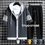 【6色展開】上下セット メンズ セットアップ ジャージ 半袖パーカー ロングパンツ おしゃれ 英文字 半ズボン 英文字 ハーフパンツ 涼しい カジュアル 夏 セール