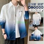 カジュアルシャツ シャツ メンズ 開襟シャツ 長袖シャツ ボタンダウンシャツ 前開き アウター トップス 秋服 秋 春 春服 グラデーション 英文字 スリム