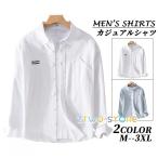カジュアルシャツ シャツ メンズ 開襟シャツ 長袖シャツ ボタンダウンシャツ 前開き アウター トップス 秋服 秋 春 春服 ゆったり 英文字 アメカジ