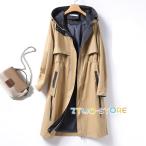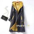 レディース ウェストアジャスター仕様のフード付きロング丈アウター コート ライトアウター パーカー 防風 秋服 春 差し色 おしゃれ きれいめ 英文字刺繍入り