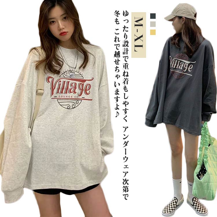 ゆったり 薄手 ロンT スウェット ロング カットソー 春 かわいい おしゃれ 秋 英字ロゴ 大きいサイズ トップス 体型カバー カットソー 韓国 長い シンプル レディース オーバーサイズ ゆるかわ ルーズ ビッグシルエット 30代 M L XL 20代 トレーナー 40代