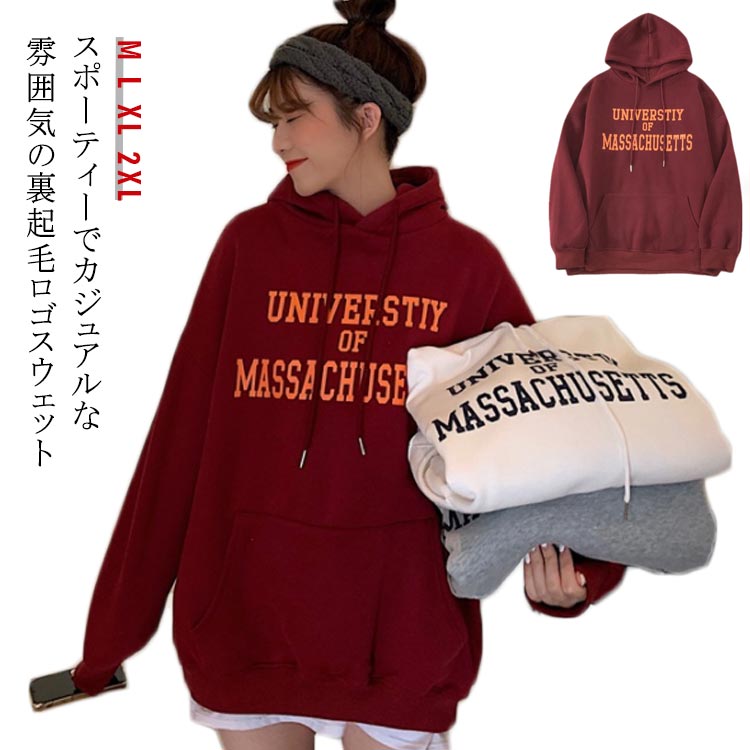 裏起毛 レディース ビッグシルエット 秋 英字 フード トレーナー フーディー スウェット 長袖 フード付き オーバーサイズ 大きい