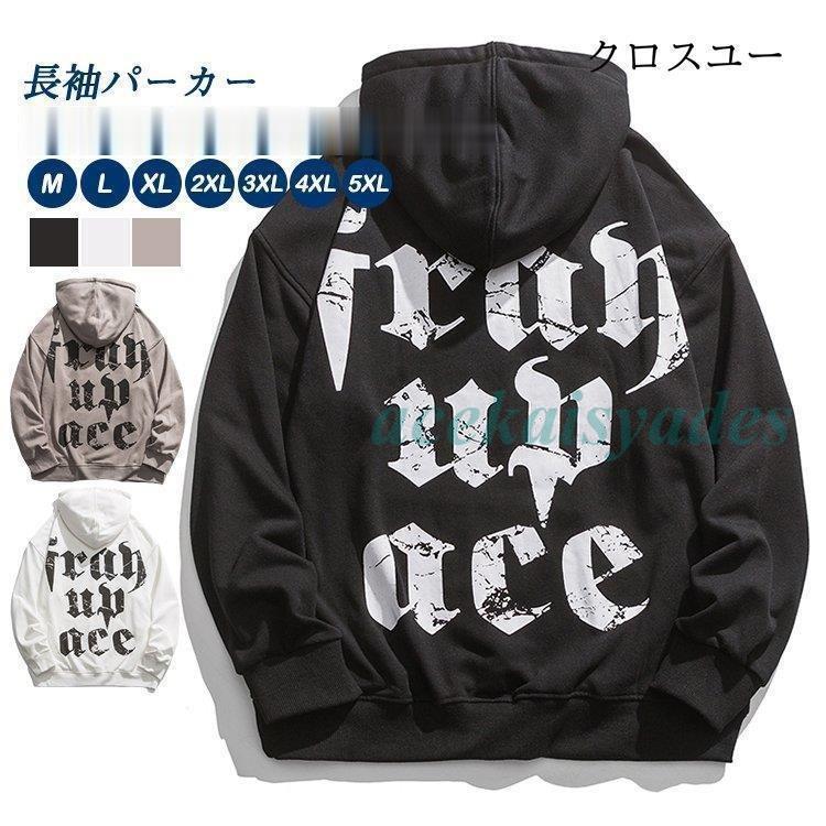 パーカー メンズ 長袖 長袖パーカー 大きいサイズ 春秋 英語柄 デザイン フード付き カジュアル 無地 ポケット