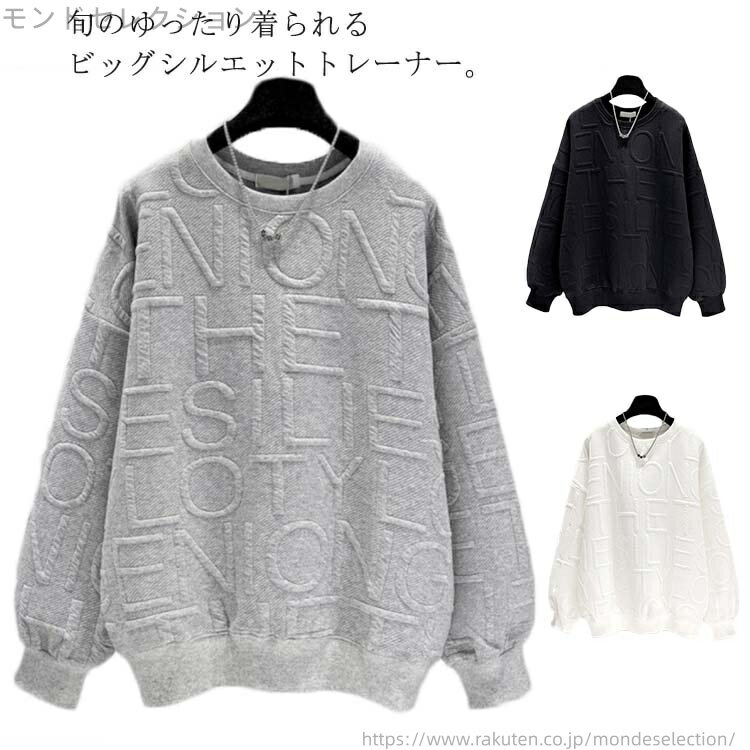 【送料無料】オーバーサイズ ゆったり 春秋 英字 クルーネック 大きいサイズ トップス プルオーバー 長袖 スウェット トレーナー レディース