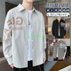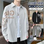 カジュアルシャツ シャツ メンズ 開襟シャツ 長袖シャツ ボタンダウンシャツ 前開き アウター トップス 秋服 秋 春 春服 ゆったり 英文字 アメカジ