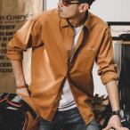 カジュアルシャツメンズ 長袖 ワークシャツ ミリタリー レトロ 英文字 無地 ポケット付き シャツジャケット 丈夫 ライトアウター 春 秋