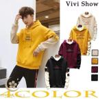 パーカー メンズ 秋服 プルオーバー トレーナー カットソー 長袖 フード付き 英文字 袖ライン カジュアル プルパーカー トップス スウェット