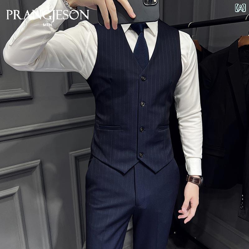 スーツ ベスト メンズ 春秋 英国 作業着 ベスト スーツ メンズビジネス カジュアル ワーク プロ ストライプ 花婿の 付添 人