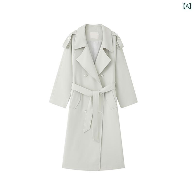 カーキ コート レディース ホワイト トレンチコート レディース ミドル 丈 2024 春秋 英国 風 高級 ドレープ コート