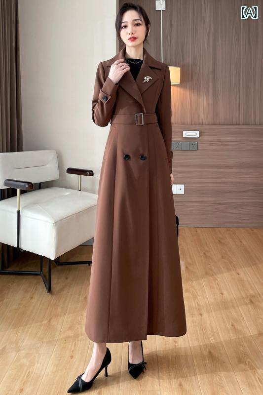 カーキ コート レディース ロング トレンチコート 2025 春秋 英国 スリム 韓国 コート レディース 服 膝上