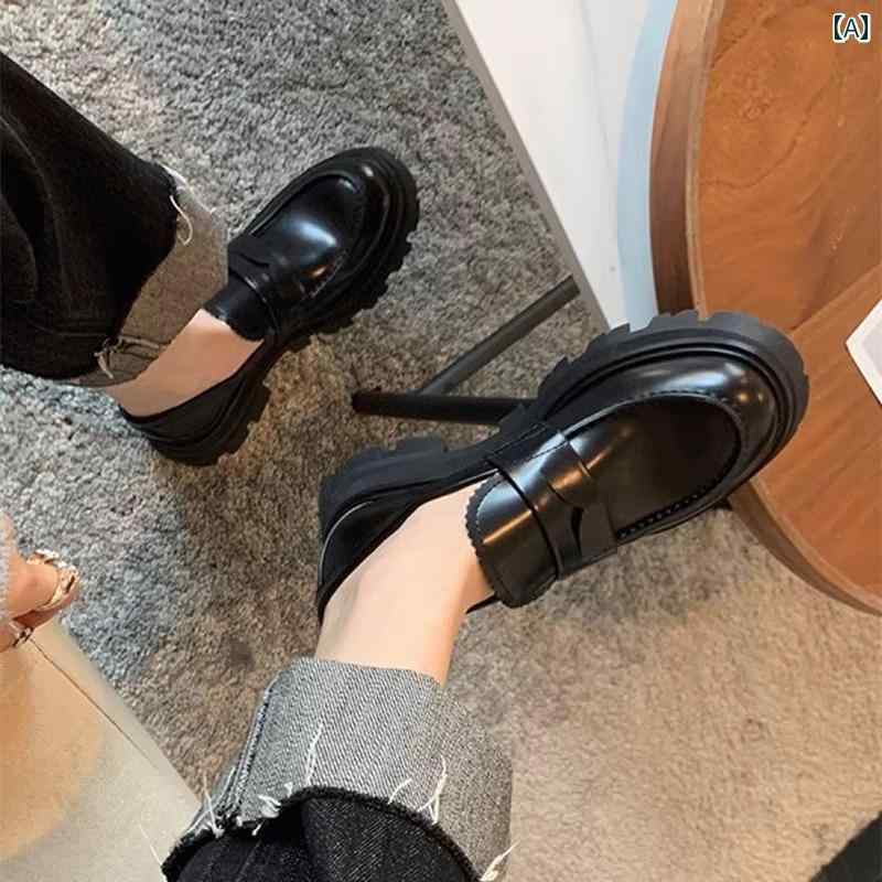 レディース ローファー 革靴 の 小さい 革靴の レディース 2024 秋 英国 シングル シューズ な 片足 スリッポン ラウンドトゥ 厚底 ローファー 革