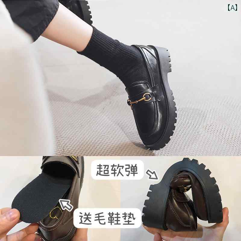 レディース ローファー 革靴 厚底 ローファー レディースシングル シューズ スモール レザーシューズ JK 2024 秋 英国 レトロ メタル バックル 学生 ソフト ソール