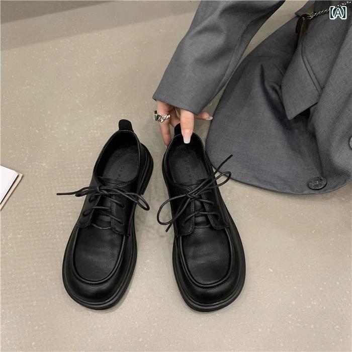レディース ローファー シューズ 2025 春秋 英国 風 レトロ 厚底 ローファー レースアップ 万能 レザーシューズ 和風 JK シングル シューズ