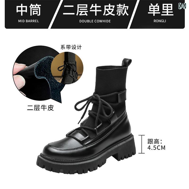 革 厚底な ミドル カーフ ブーツ レディース 2025 春秋 英国 スタイル ロング 脚 万能 マイ ラード