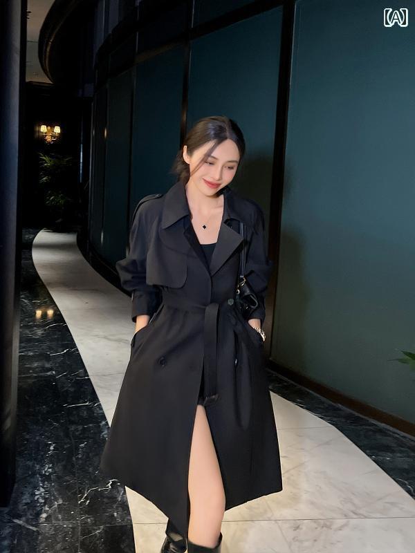 レディース コート 春 オシャレ ブラック トレンチコート レディース ミドル 丈 コート 2025 春秋 英国 風の カジュアル 韓国