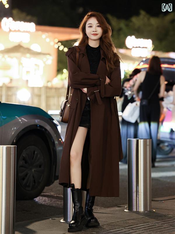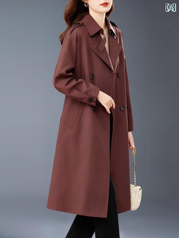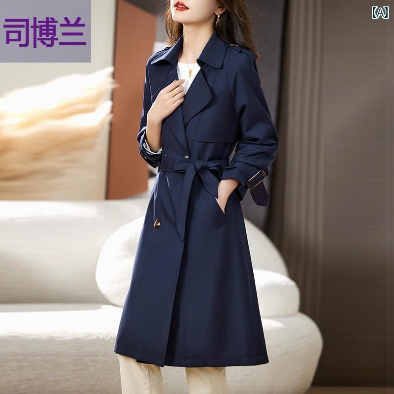 カーキ コート レディース レディース トレンチコート ミディアム ロング 小柄な 方向 け 2024 春秋 英国 スタイル の カーキ コート