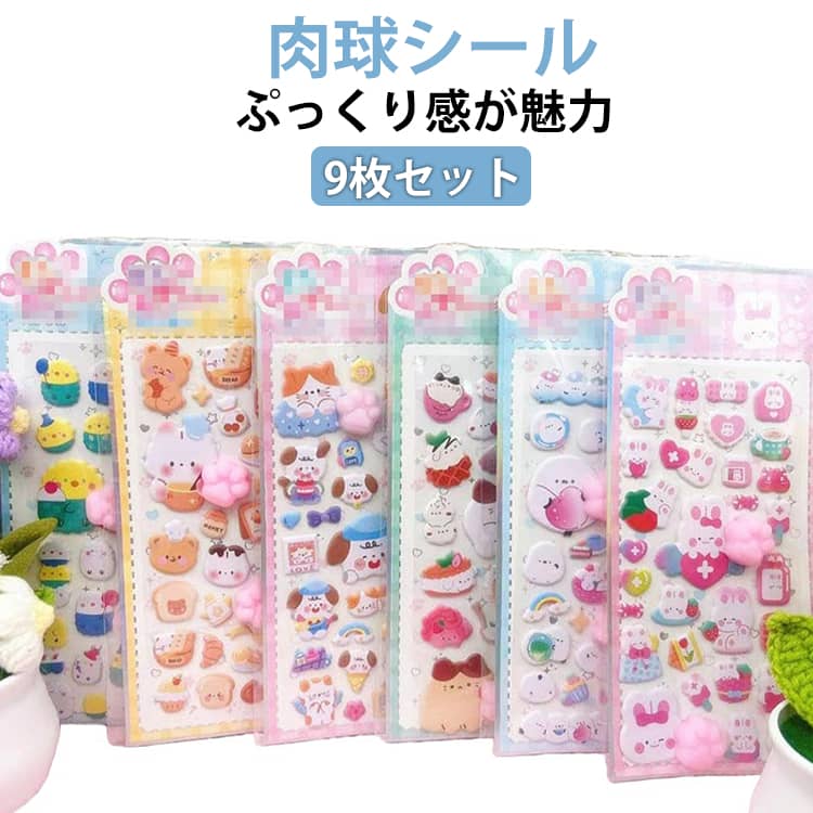 9枚セット ぷくぷく 肉球 にくきゅう ぷくぷくシール 犬 ぷにぷに 3D立体ステッカー シール 動物 かわいい 猫の手 猫 キャラクター うさぎ クマ 肉球デザイン デコレーション シール 手帳 スマホケース DIY 貼り付け シマエナガ ぷっくり立体