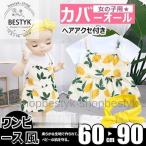 ロンパース ベビー服 夏 新生児 ワンピース 女の子 半袖 出産祝い キッズ 子供服 ベビー 赤ちゃん 服 カート付きロンパース 60/70/80/90 小花柄 ヘアアクセ付き