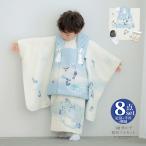 七五三 着物 3歳 男の子 被布セット「水色×白 葵の丸」日本製 三歳男児被布セット 子供着物 フルセット 三才のお祝い着 3才向け(メール便不可)
