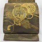 袋帯 秀品 笛 松竹梅 金糸 灰色 六通 正絹 中古