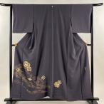 訪問着 身丈158cm 裄丈65cm M 袷 桜 笛 金彩 ぼかし 灰色 正絹 優品 中古