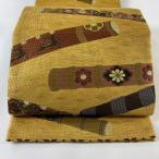 袋帯 美品 秀品 笛 鹿 金糸 箔 黄土色 六通 正絹 中古