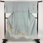 付下げ 身丈161.5cm 裄丈65.5cm M 袷 青海波 笛 絞り 刺繍 灰色 正絹 秀品 中古