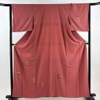 付下げ 身丈164.5cm 裄丈66cm M 袷 笛 椿 刺繍 金銀彩 小豆色 正絹 秀品 中古