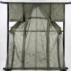 訪問着 身丈162cm 裄丈66cm M 紗袷 桐 笛 銀彩 茶緑色 正絹 名品 中古