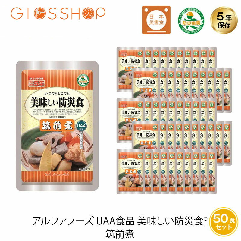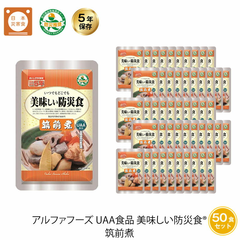 非常食 UAA食品 美味しい防災食 筑前煮 90g×50食 アルファフーズ 5年保存 おかず 防災食 防災グッズ メーカー直送 代引不可 同梱不可 送料無料