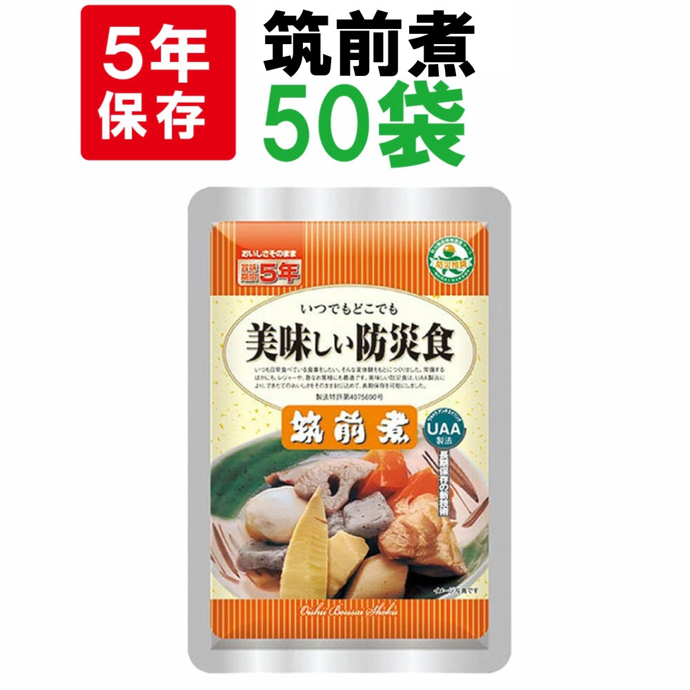 【美味しい防災食 筑前煮 50袋入】5年保存食 非常食 おかず 調理不要 そのまま食べられる非常食 お惣菜 副食 防災食 防災備蓄 防災グッズ 備蓄食 備蓄 レトルト食品 レトルトおかず おかず レトルト惣菜 和食