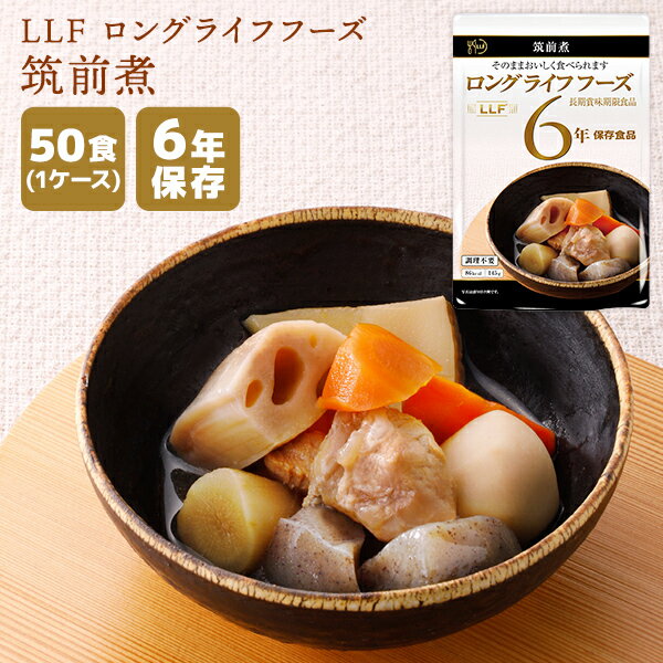 【今だけ10%OFF】【ケース販売】LLF ロングライフフーズ 筑前煮 50食 | 長期保存 賞味期限6年 非常食 防災食 保存食 LLF食品 LLC おかず 煮物 惣菜 野菜 レトルト ケース 防災グッズ 災害用 備蓄 防災【※代引き不可】【2512ss】