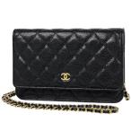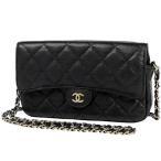 シャネル CHANEL ココマーク チェーンウォレット マトラッセ チェーンウォレット キャビアスキン ブラック レディース 中古