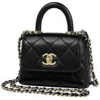 シャネル CHANEL ココマーク チェーン ショルダーバッグ ダブルフェイス マトラッセ レザー ブラック レディース 中古