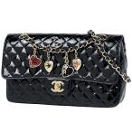 シャネル CHANEL ココマーク チェーン ショルダーバッグ マトラッセ Wチェーン バレンタイン ハート エナメル パテントレザー ネイビー A48129 レディース 中古