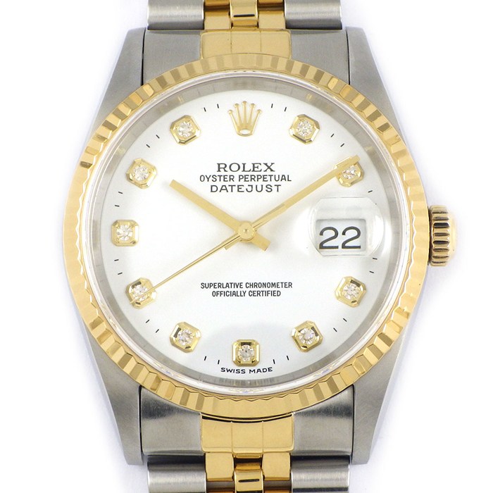 【レビュー1000件記念★対象品3%OFF】 ロレックス Rolex 腕時計 デイトジャスト 16233G P番 2000年製 10ポイント ダイヤインデックス ホワイト文字盤 デイト K18YG SS 自動巻き 【箱・保付き】 【中古】