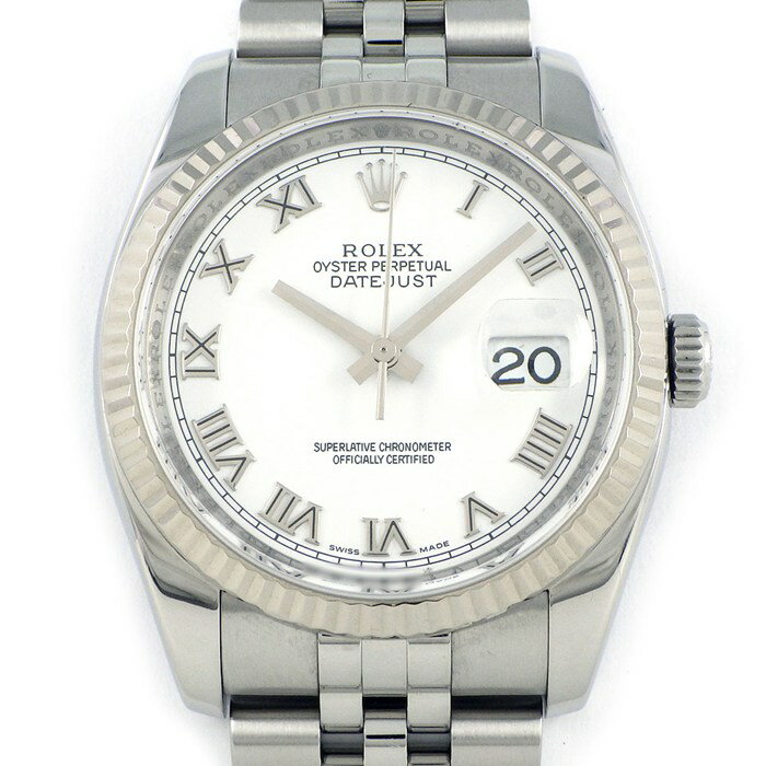 【レビュー1000件記念★対象品3%OFF】 ロレックス Rolex 腕時計 デイトジャスト 116234 ホワイト文字盤 ローマンインデックス ルーレット刻印 ランダムシリアル デイト K18WG SS 自動巻き 【箱・保付き】 【中古】