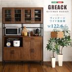 送料無料 ヴィンテージ食器棚 120cm幅 ワイド キッチンボード 収納 スチール スライド棚 レンジ台 ガラス 扉 レンジラック 木製 ダイニング おしゃれ szo 家具