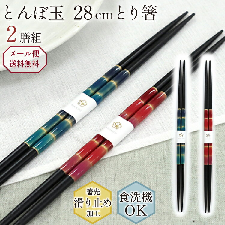 【ポイント10倍!まとめ買いクーポンMAX5%OFF 11/16 23:59まで】とり箸 食洗機対応 28cm 2膳組 とんぼ玉 光彩 黒 日本製 キッチン用品 キッチンツール