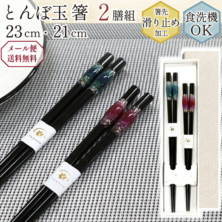 【ポイント10倍!まとめ買いクーポンMAX5%OFF 11/16 23:59まで】箸 食洗機対応 21cm 23cm 2膳組 とんぼ玉 珀宝 日本製 キッチン用品 キッチンツール