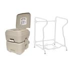 水洗トイレ 簡易ポータブルトイレ 20L / ポータブルトイレ用 手すり フレーム 10L 20L兼用 2点セット
