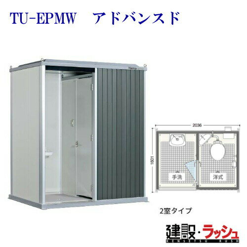 ハマネツ トイレユニット TU-EPMW アドバンスド エポックトイレ 水洗タイプ 手洗+洋式 屋外用 2室 仮設トイレ コンパクト 建築現場 作業所 倉庫