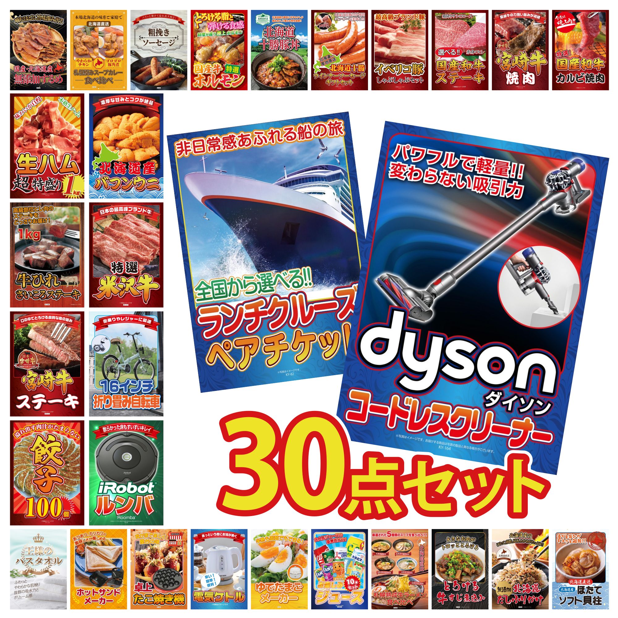景品 パネル 目録 30点セット Dyson コードレスクリーナー ランチクルーズ ペア チケット ルンバ 折り畳み 自転車 特選 米沢牛 ビンゴ 結婚式 二次会 披露宴 会社イベント ゴルフコンペ 忘年会 抽選会