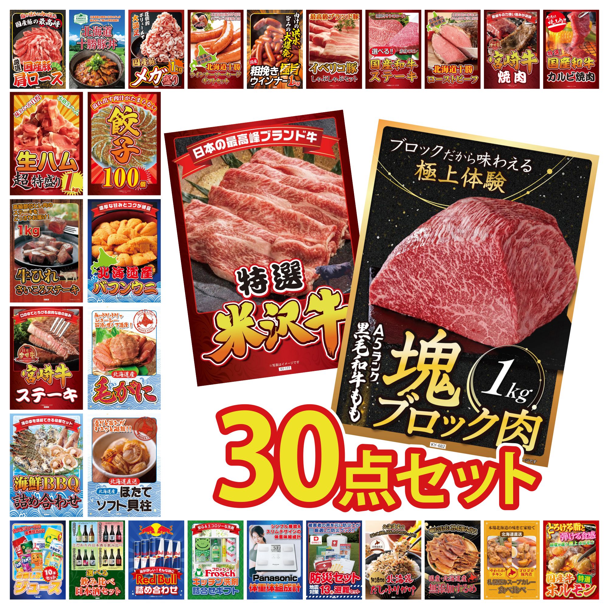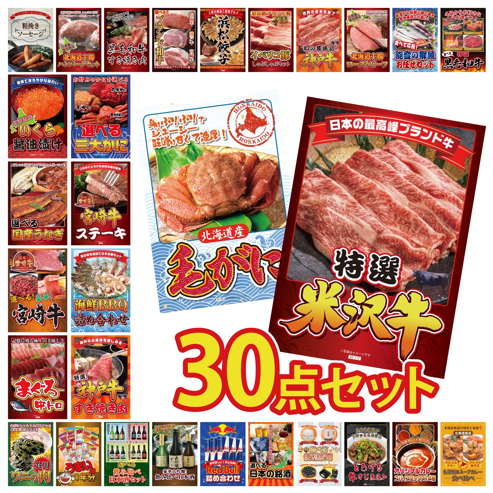 景品 パネル 目録 30点セット 特選 米沢牛 北海道 毛ガニ 神戸牛 すき焼き 海鮮 詰め合わせ 宮崎牛 ロースステーキ ビンゴ 結婚式 二次会 披露宴 会社イベント ゴルフコンペ 忘年会 抽選会