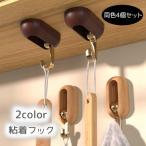 粘着フック ウォールフック 回転フック 同色4個セット 壁掛けフック 穴あけ不要 両面テープ 掛ける収納 小物フック 台所 キッチン お風呂 ウッド調