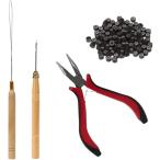 エクステ用ペンチ ニードル 糸通し エクステ用チップ 4点セット black黒色チップ