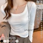 tシャツ カットソー リブ 秋冬新作 レディース 長袖 綿混 インナー トップス カジュアル 無地 ストレッチ シンプル 上品 着回し Tシャツ 着痩せ 重ね着