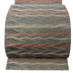 袋帯 秀品 よろけ縞 金通し 深緑 全通 正絹 中古
