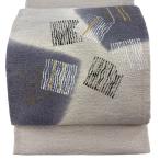 袋帯 秀品 幾何学模様 銀通し 金彩 灰色 お太鼓柄 正絹 中古