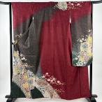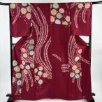 付下げ 身丈165.5cm 裄丈66cm M 袷 辻が花柄 藤 銀通し えんじ色 正絹 名品 中古
